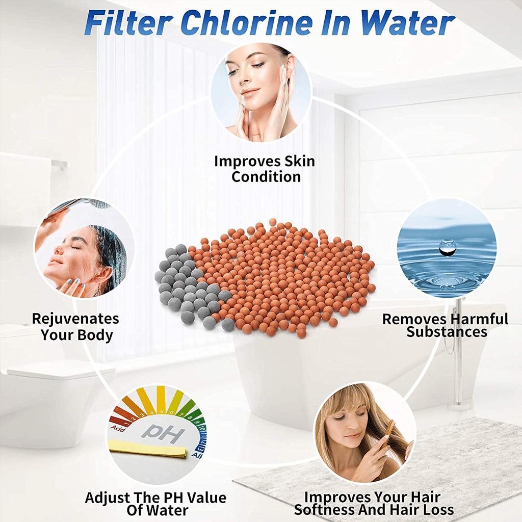 يستخدم رأس الدش المرشح الأحجار الحيوية النشطة مما يوفر ترشيحاً للمياه النقية البيئية لإزالة المواد الضارة. يمكنه تنقية مياه الاستحمام وضبط درجة الحموضة في الماء، مما يجعل جودة المياه في القلوية الضعيفة. يساعد على استعادة بشرة أكثر صحة ونعومة، ونعومة وقوة شعرك.