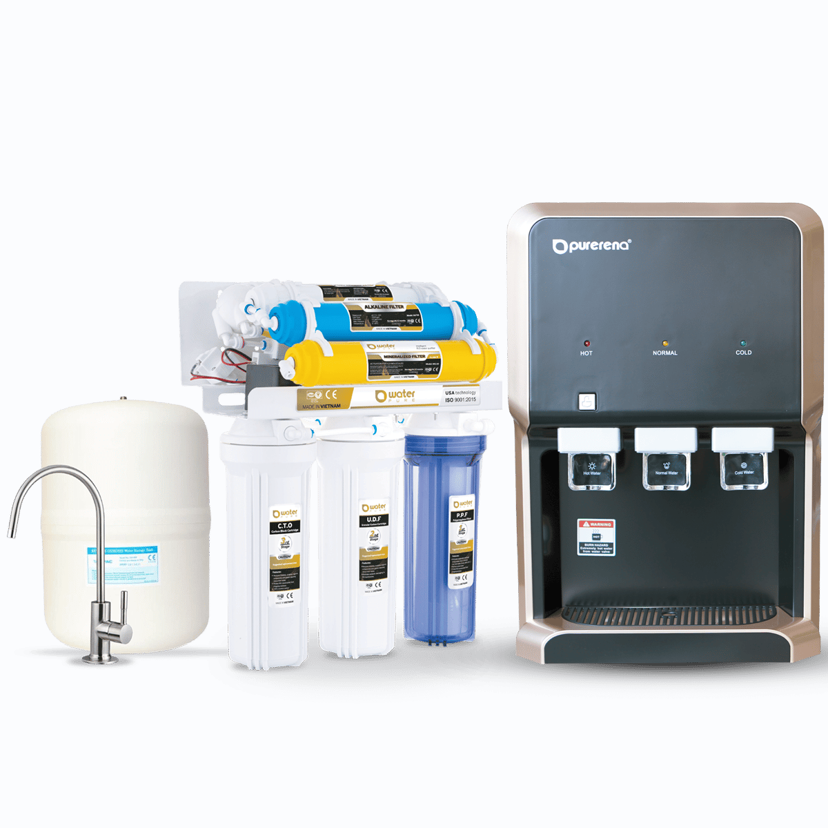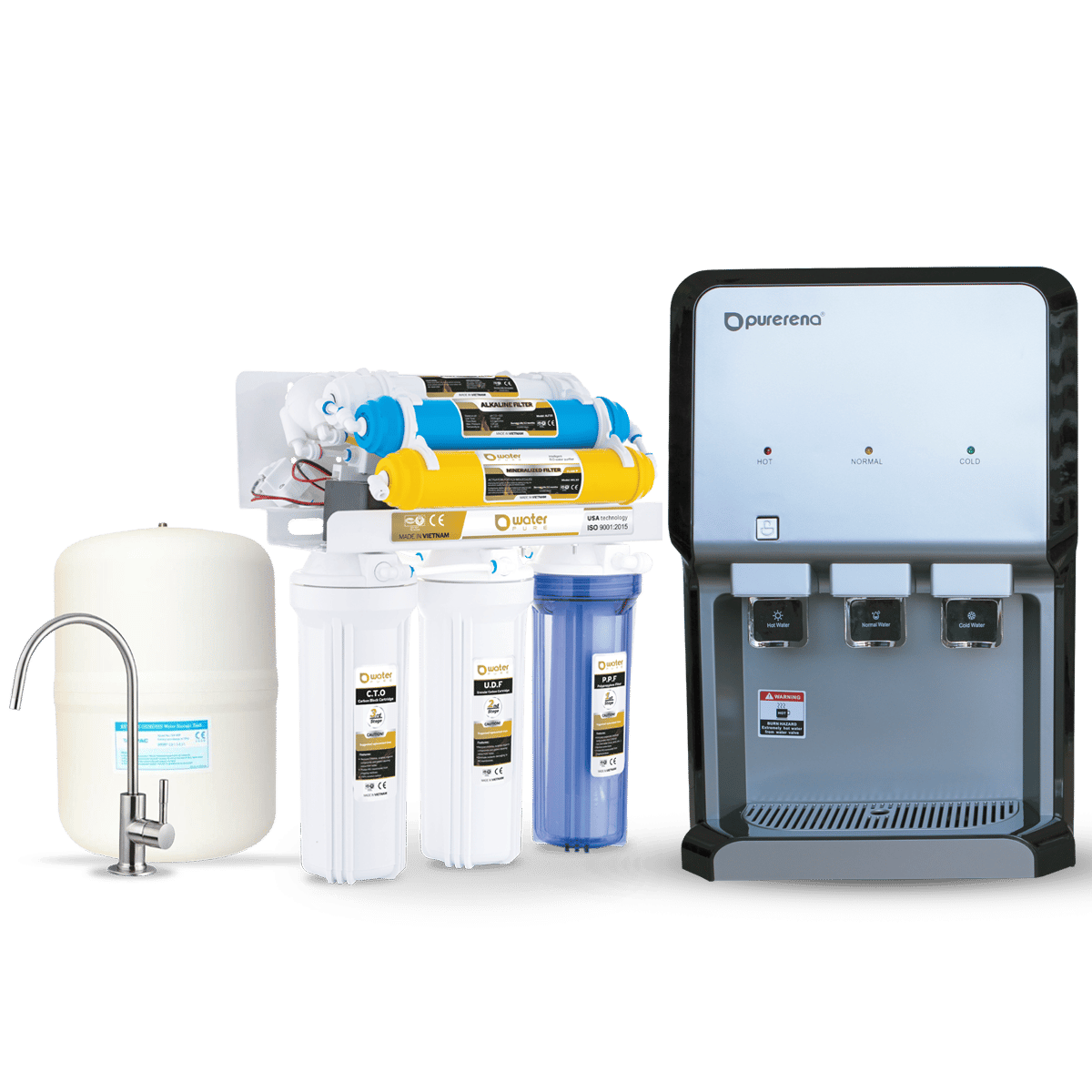 برادة طاولة بيورينا فلتر مياه 7 مراحل فيتنامي بيور موديل فاخر يتم توصيل البراده بفلتر التحلية مباشرة وتتميز براده ووتر بيور بأنها  موفره للطاقة والوقت والمجهود المبذول في ملء وشراء القوارير، يشتمل على 3 صنابير تحصل منها على الماء البارد و الساخن والعادي  حسب احتياجك .